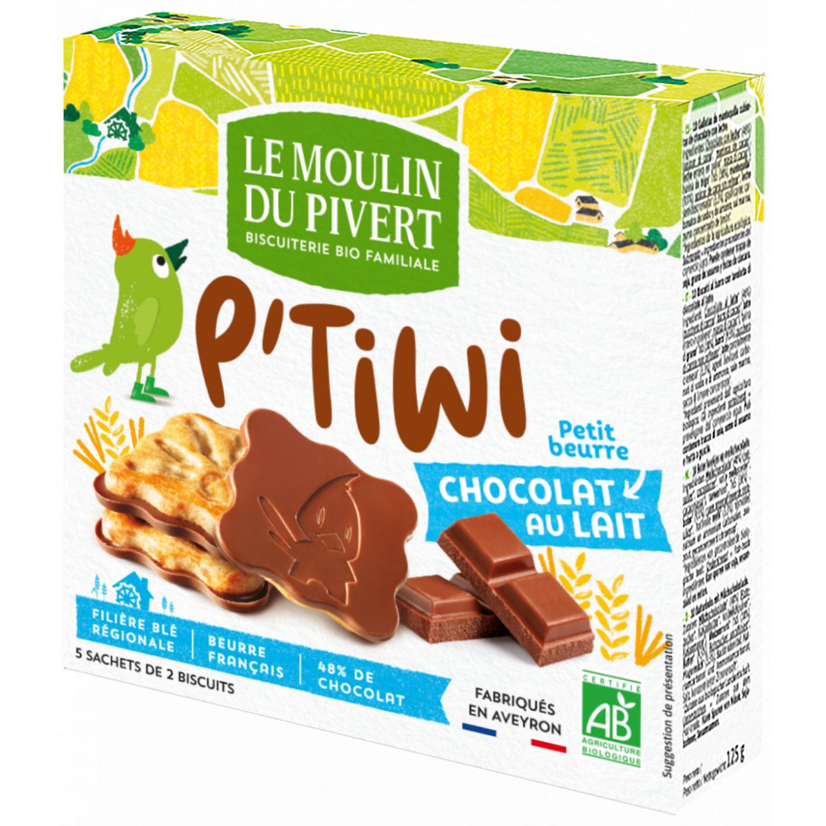 Biscuits P'tiwi petits beurre chocolat au lait bio & équitable de la marque Le Moulin du Pivert