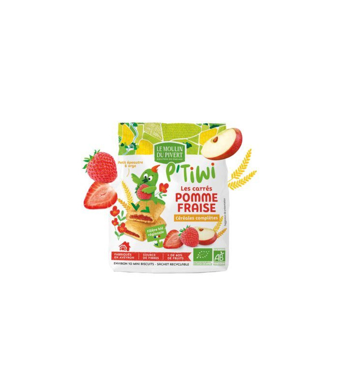 DATE DÉPASSÉE - Biscuits P'tiwi carrés fourrés pomme fraise bio & équitable