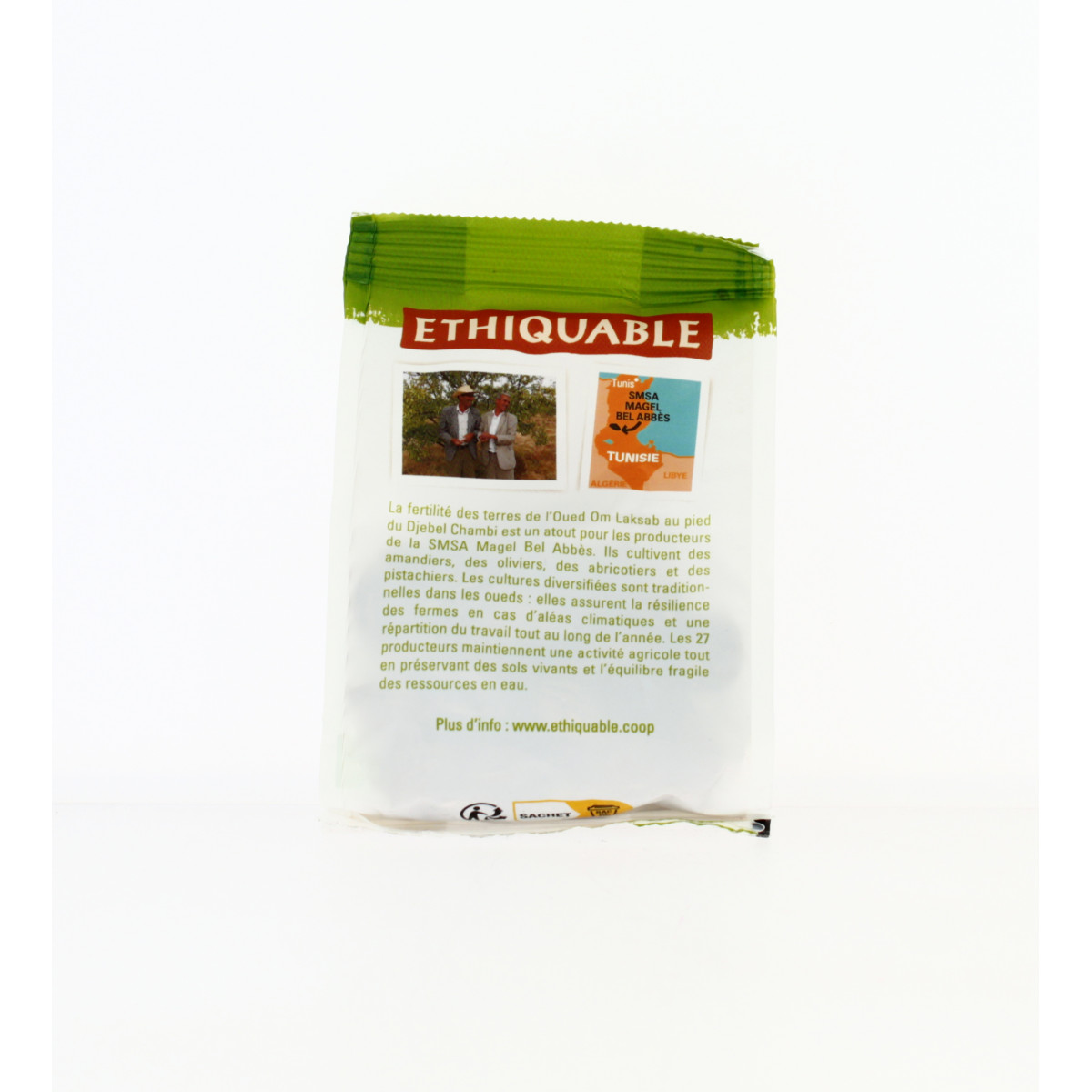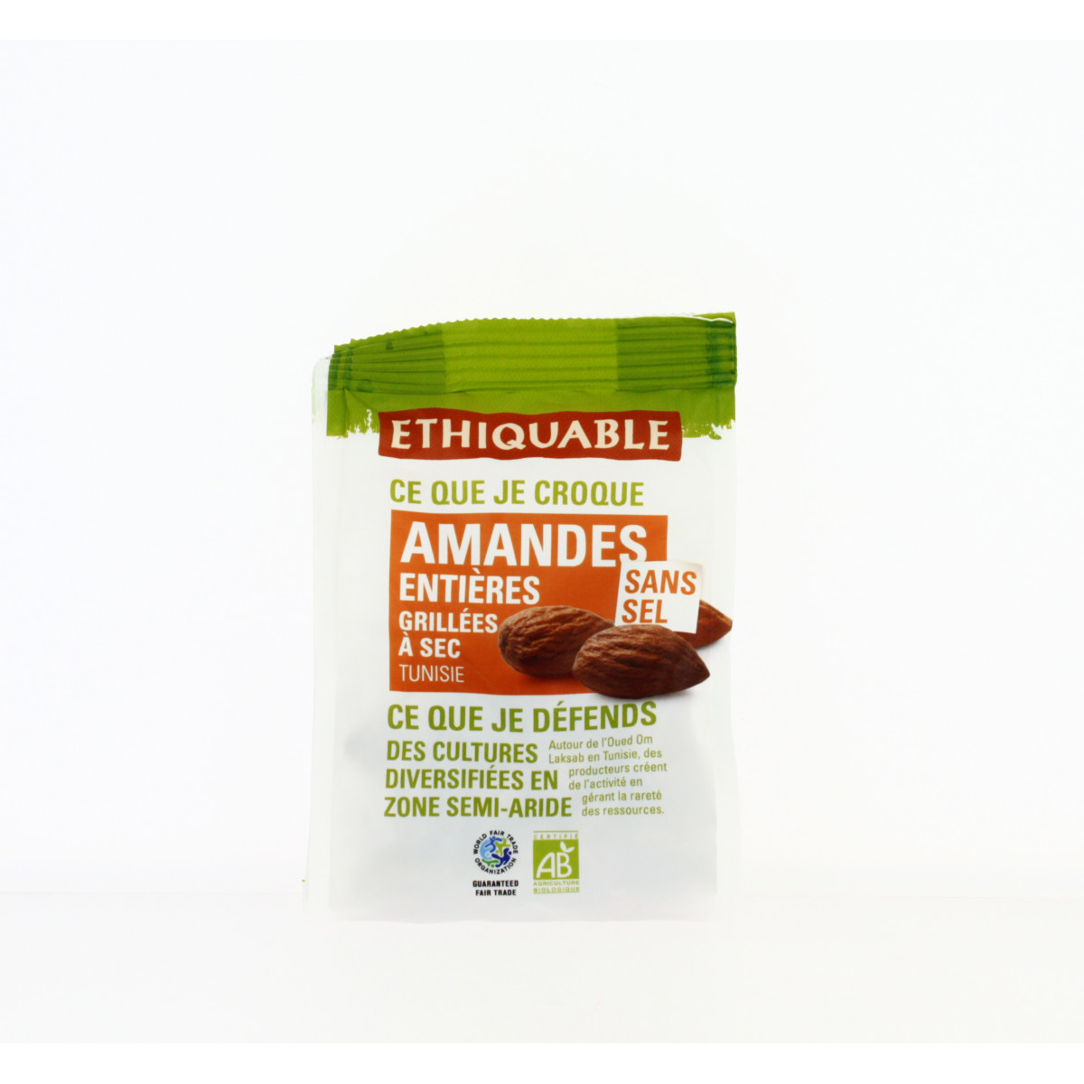 Noix de Cajou Grillées à sec SANS SEL bio & équitable de la marque ETHIQUABLE. ""Habituellement les producteurs de Cajou vendent des noix brutes, qui sont ensuite transformées par l'industrie. Or, une noix de cajou décortiquée vaut 2.5 fois plus qu'une noix brute. La coopérative APRAINORES au Salvador et la coopérative FTAK en Inde ont crée leur propre unité de décorticage et obtiennent ainsi une plus grande part de valeur ajoutée."" Poids net : 100 g.