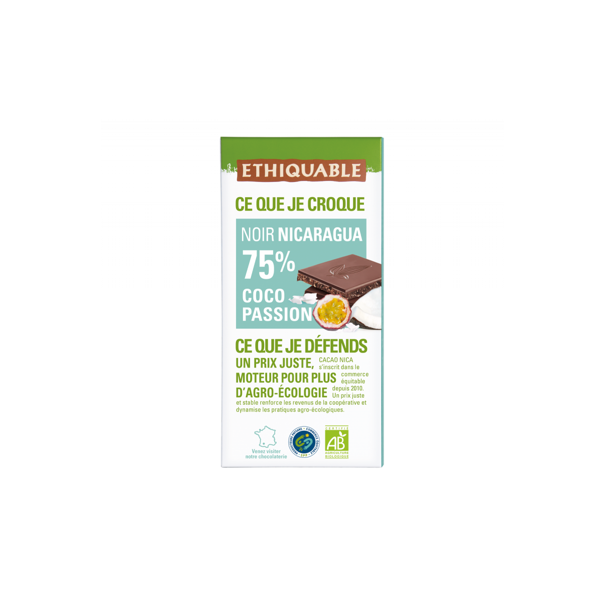 Chocolat Noir Grand Cru 75% bio & équitable de la marque Ethiquable
