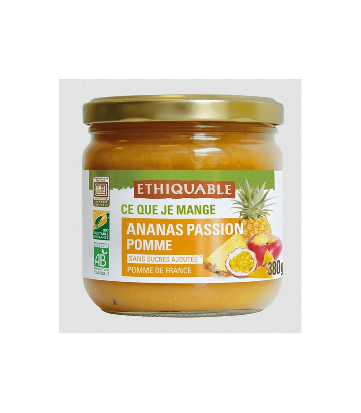 Compote Pomme Ananas sans sucre ajoutés bio et équitable