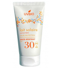 Crème solaire bio indice 30 de la marque UV BIO. Crème solaire bio aux extraits de baies de goji et d'huile de karanja, water resistant, respectueux des recifs coraliens. Le lait solaire SPF 30 est un soin solaire hydratant qui protège la peau des rayons du soleil au quotidien. Le complexe protecteur est une association inédite d?huile de Karanja, d'extrait de baies de Goji et de cires de Tournesol et de Jojoba, et de filtre minéral. L?huile de Karanja a, en plus de ses excellentes propriétés hydratantes, nourrissantes et protectrices, la capacité de booster l?efficacité des filtres solaires minéraux de par sa capacité naturelle à absorber les rayons UV du soleil. - Résistant à l?eau - Sans nanoparticules, ni PEG, ni paraben, ni parfum, ni colorant, ni conservateur issus de la chimie de synthèse - 100% naturel, certifié bio & vegan - Filtre solaire : dioxyde de titane sans nanoparticules - Texture fine et riche qui se fond dans l?épiderme tout en le protégeant efficacement Principes actifs : - Huile de Karanja : fort pouvoir absorbant des UVA et B - Extrait camomille bio : propriété calmante, apaisante, anti-inflammatoire - Extrait de baies de Goji : riche en acides aminés, en minéraux, en caroténoïdes, et en vitamines ? aide l?organisme à lutter contre les agressions extérieures ? propriétés anti-oxydantes et anti-radicalaires - Cires de tournesol, Jojoba : facilite l?étalement du lait, évite la déshydratation de la peau et apporte une douceur inégalée à la peau Fabriqué en France. Volume net : 100 ml