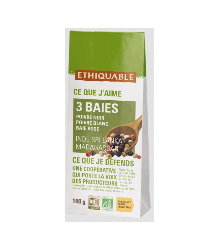 130 g - 1 moulin Poivre noir de Tellicherry (50 g) + 1 moulin Mélange 5 baies (40 g) + 1 moulin Sur la route (40 g)