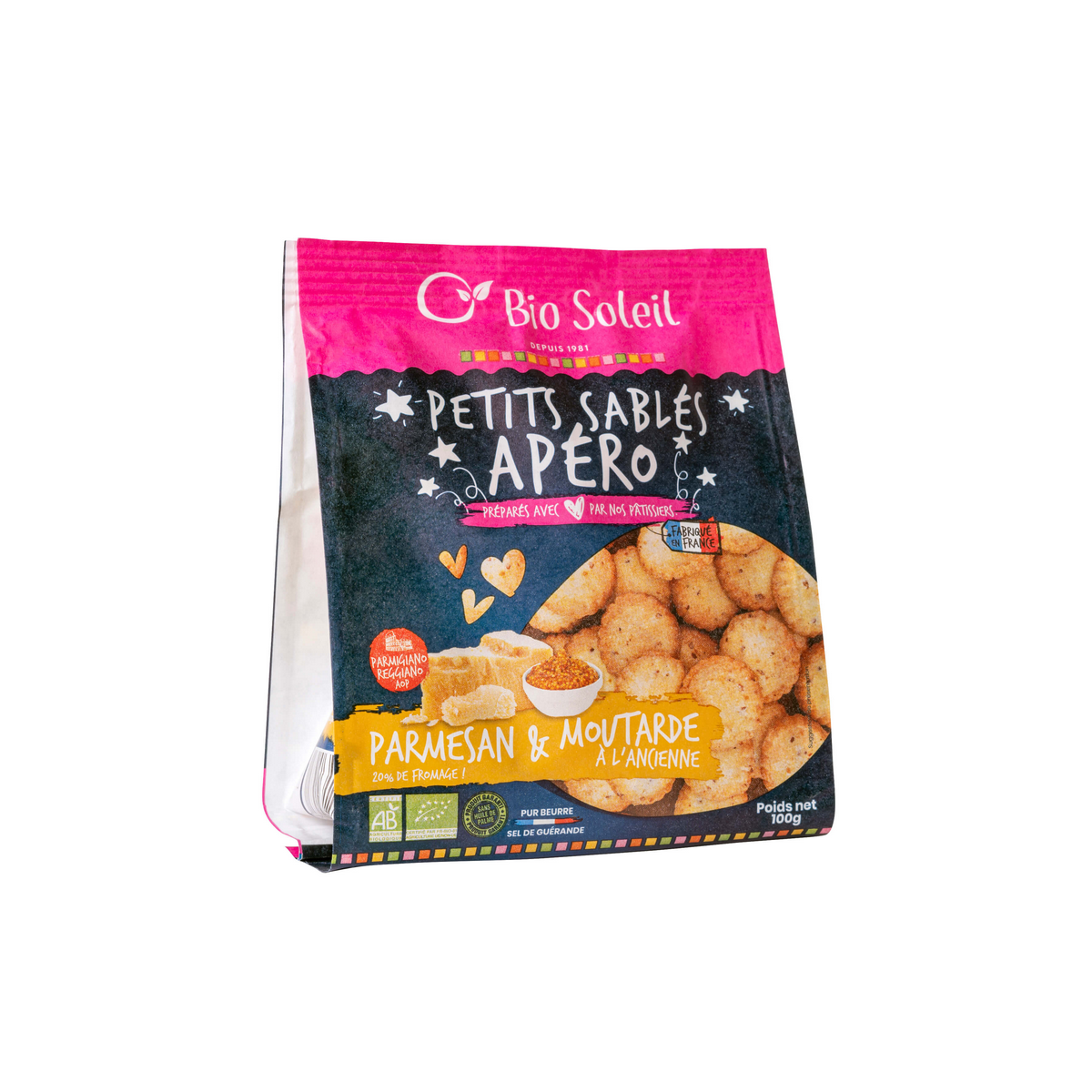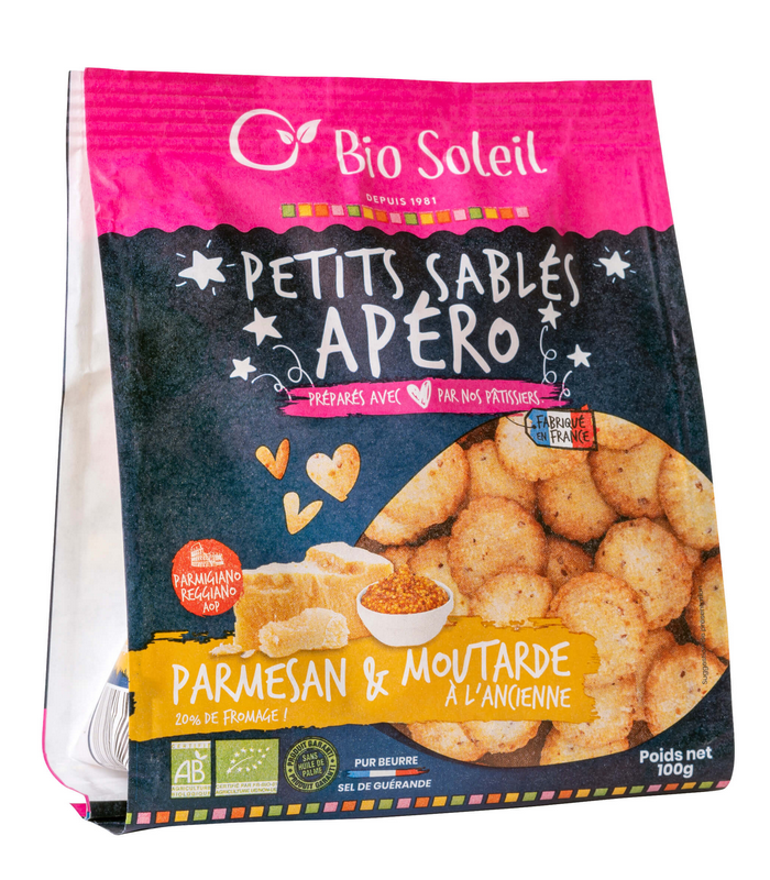 Petits sablés apéro Parmesan et Moutarde Bio de la marque BIO SOLEIL