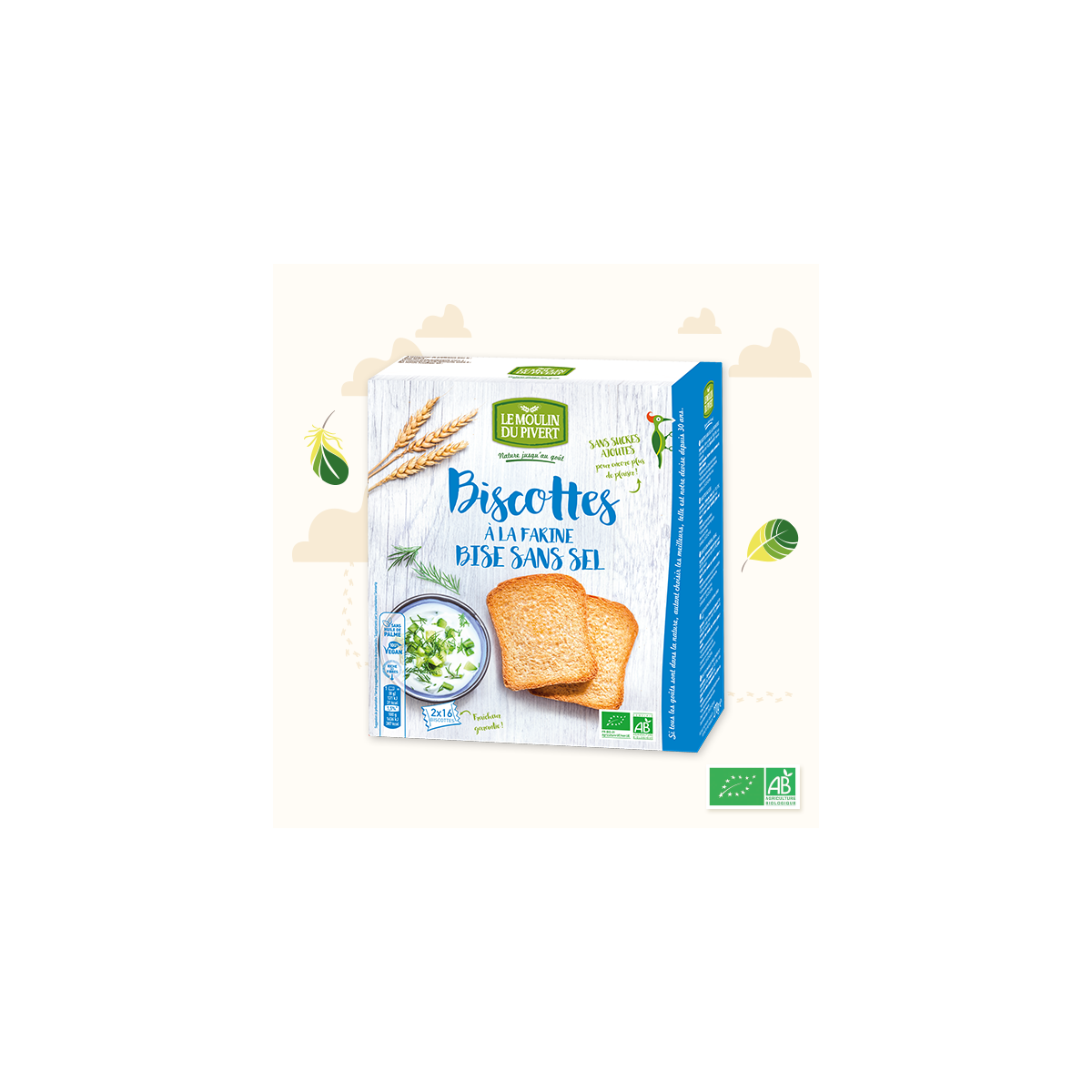 Biscottes sans sel et sans sucres ajoutés bio de la marque LE MOULIN DU PIVERT.