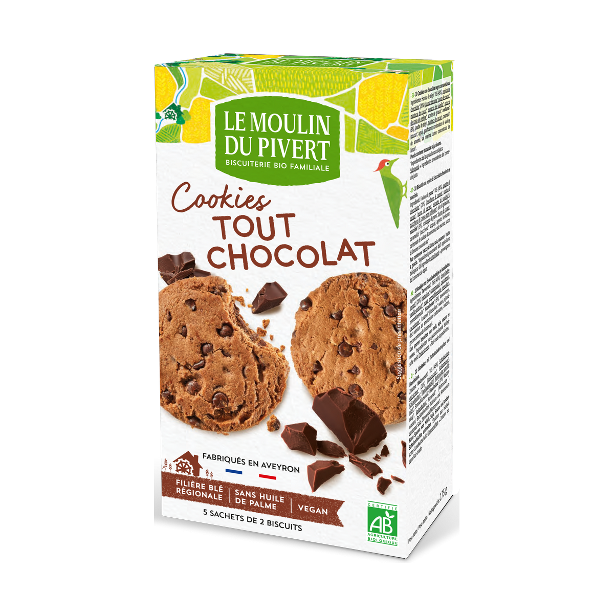 Cookies bio aux pépites et noisettes de la marque Le Moulin du Pivert
