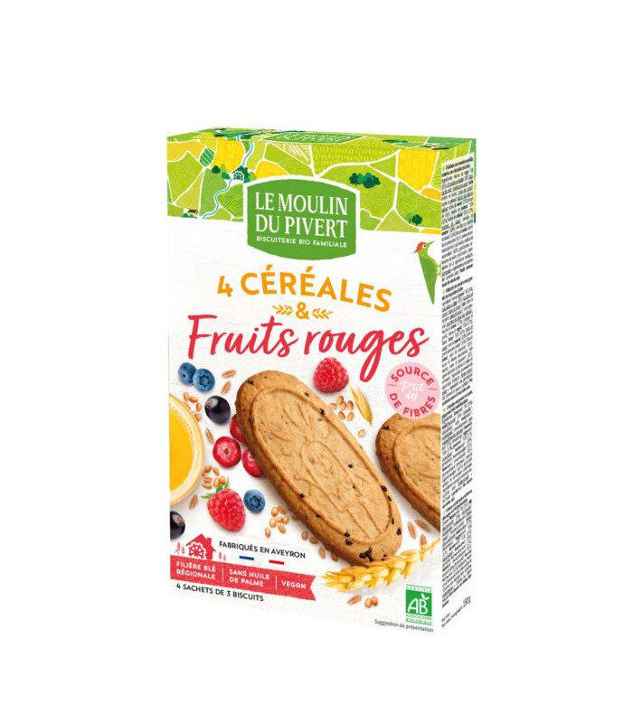 Biscuits 4 Céréales & Fruits rouges bio & vegan de la marque Le Moulin du Pivert
