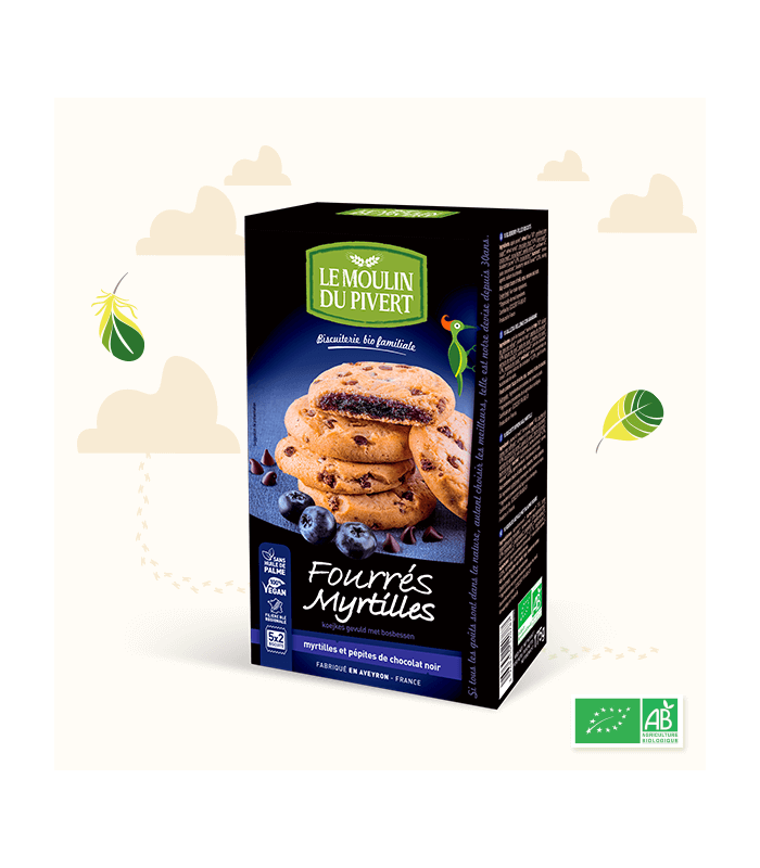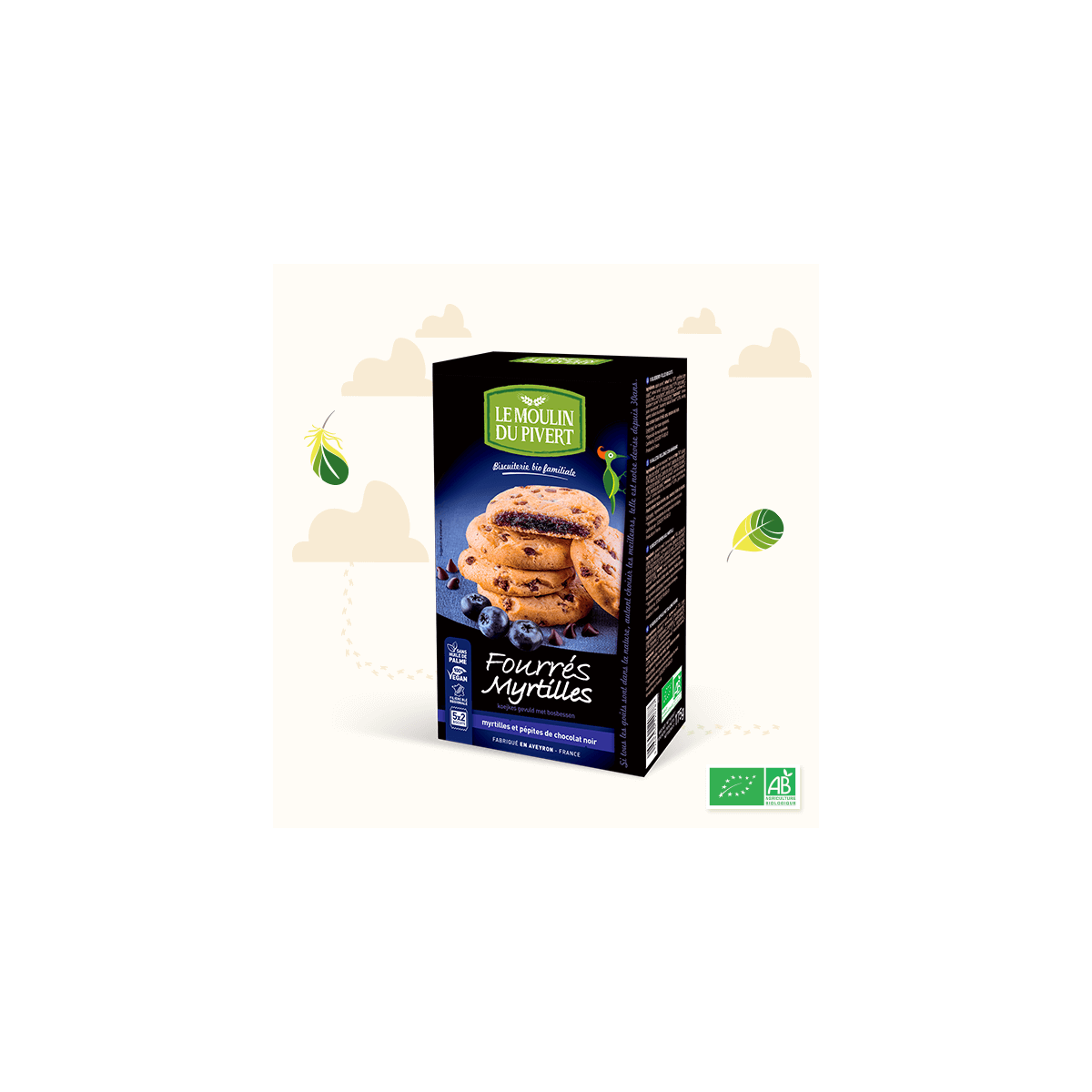Fourré Myrtille Et pépites de chocolat noir bio & équitable de la marque Le Moulin du Pivert