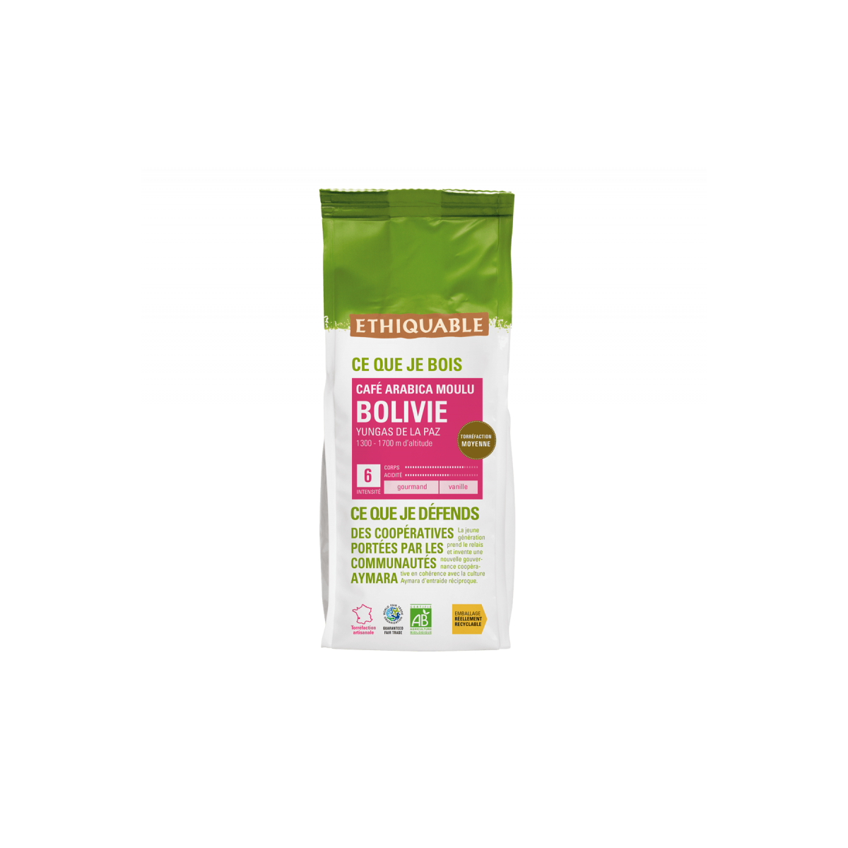 Café de Bolivie moulu bio & équitable de la marque ETHIQUABLE.