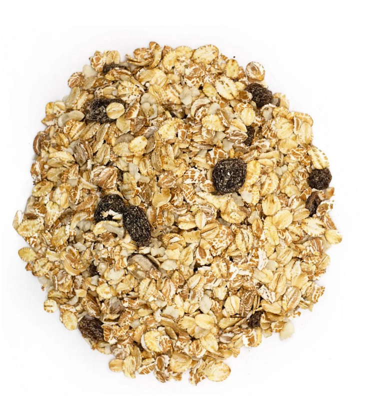Flocons d'avoines complets*(GLUTEN), flocons de blé*, flocons d'orge*(GLUTEN), flocons de seigle*(GLUTEN), raisins secs*(raisins*, huile d tournesol), noix de cajou*, kasha*