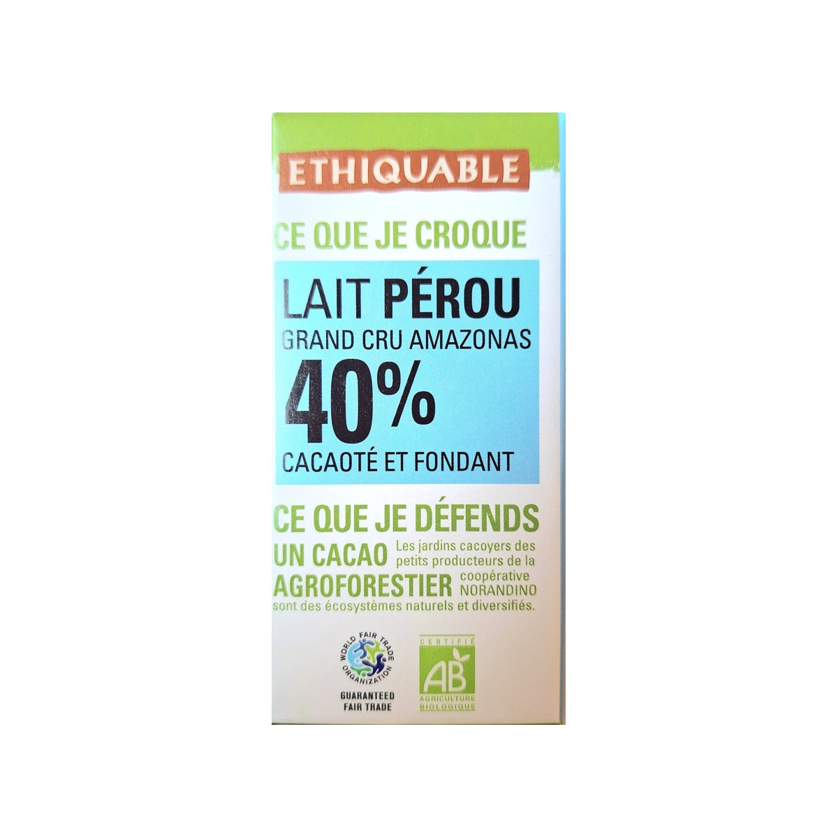 Mini tablette chocolat lait 40% bio & équitable de la marque ETHIQUABLE