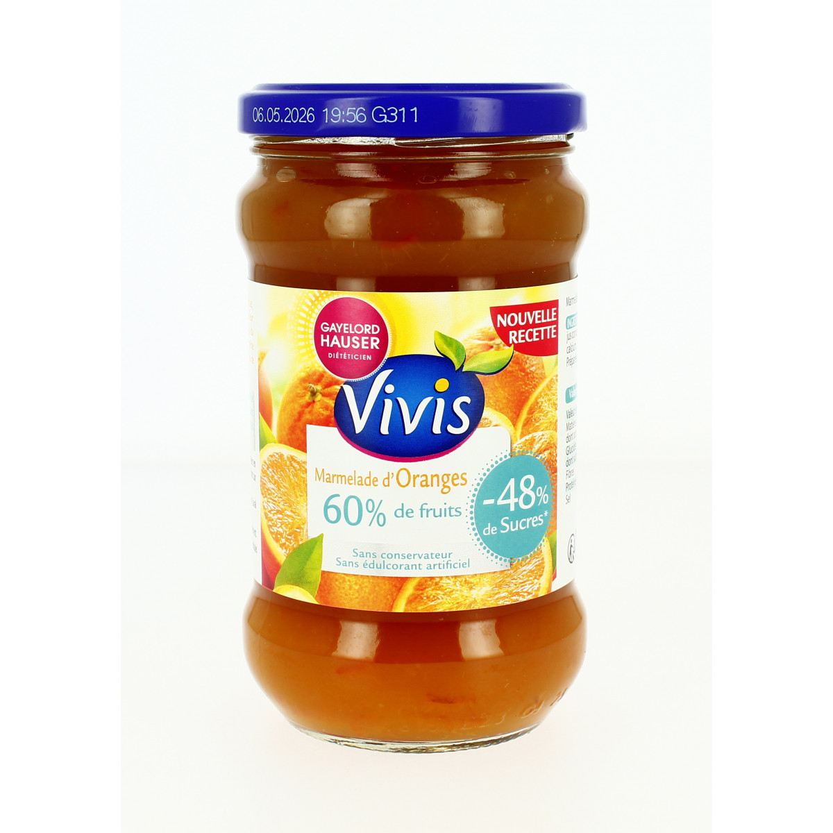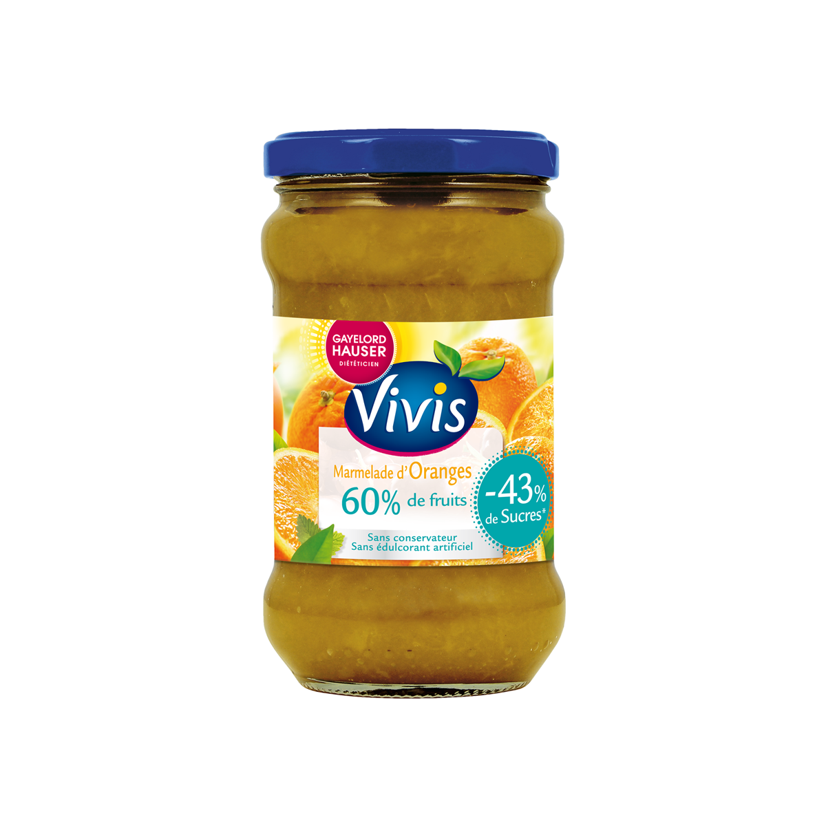 La Marmelade d’Oranges Vivis Gayelord Hauser a été élaborée avec 60% de fruits et à partir de fructose, sucre d’origine végétale, naturellement présent dans les fruits et le miel et qui possède un pouvoir sucrant presque 2 fois supérieur à celui du sucre classique. Avec 43% de sucres en moins que les confitures présentes sur le marché, cette confiture diététique, sans conservateur ni édulcorant artificiel, est idéale pour un petit déjeuner équilibré.