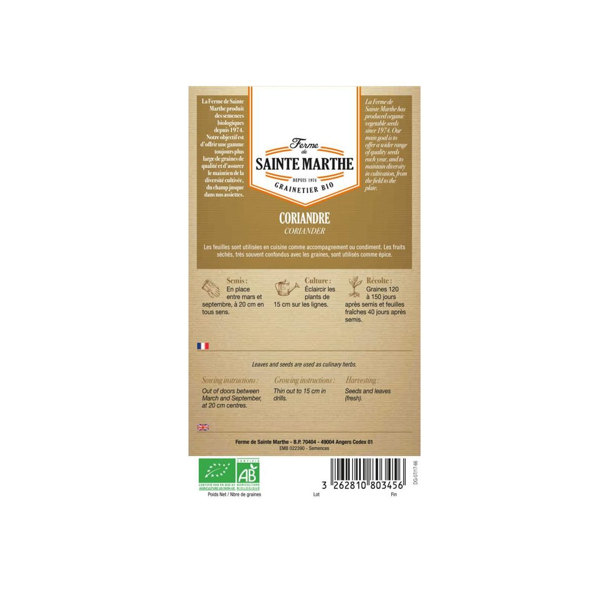 Coriandre - Semences reproductibles bio produites par la Ferme de Sainte Marthe