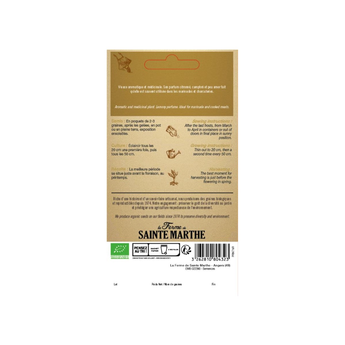 Vivace aromatique et médicinale. Son parfum citronné, camphré et peu amer fait qu´elle est souvent utilisée dans les marinades et charcuteries.