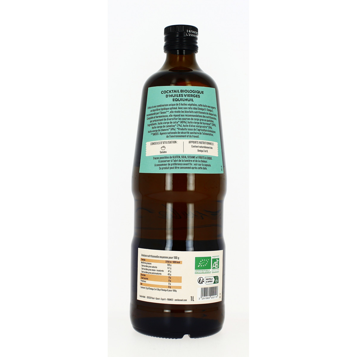 Equilhuil est un mélange de 5 huiles vierges biologiques (colza, tournesol, cameline, olive et chanvre), soigneusement sélectionnées et pressées à froid. Élaboré en réponse aux recommandations nutritionnelles de l’ANSES, ce mélange unique vise à rééquilibrer les apports en oméga-6 et oméga-3 dans l’alimentation quotidienne. Il allie performance nutritionnelle et plaisir gustatif, avec un profil doux et harmonieux.