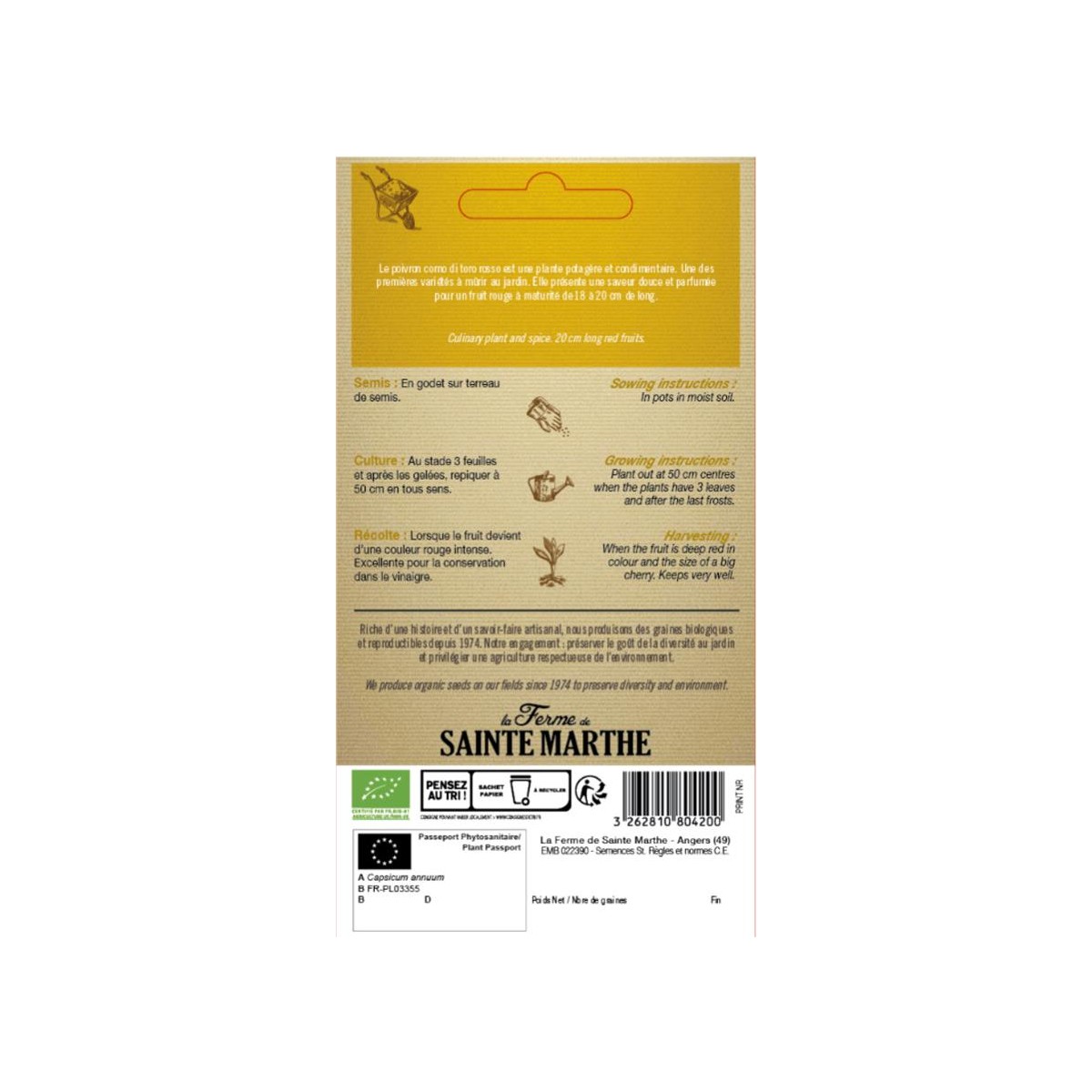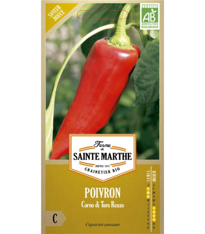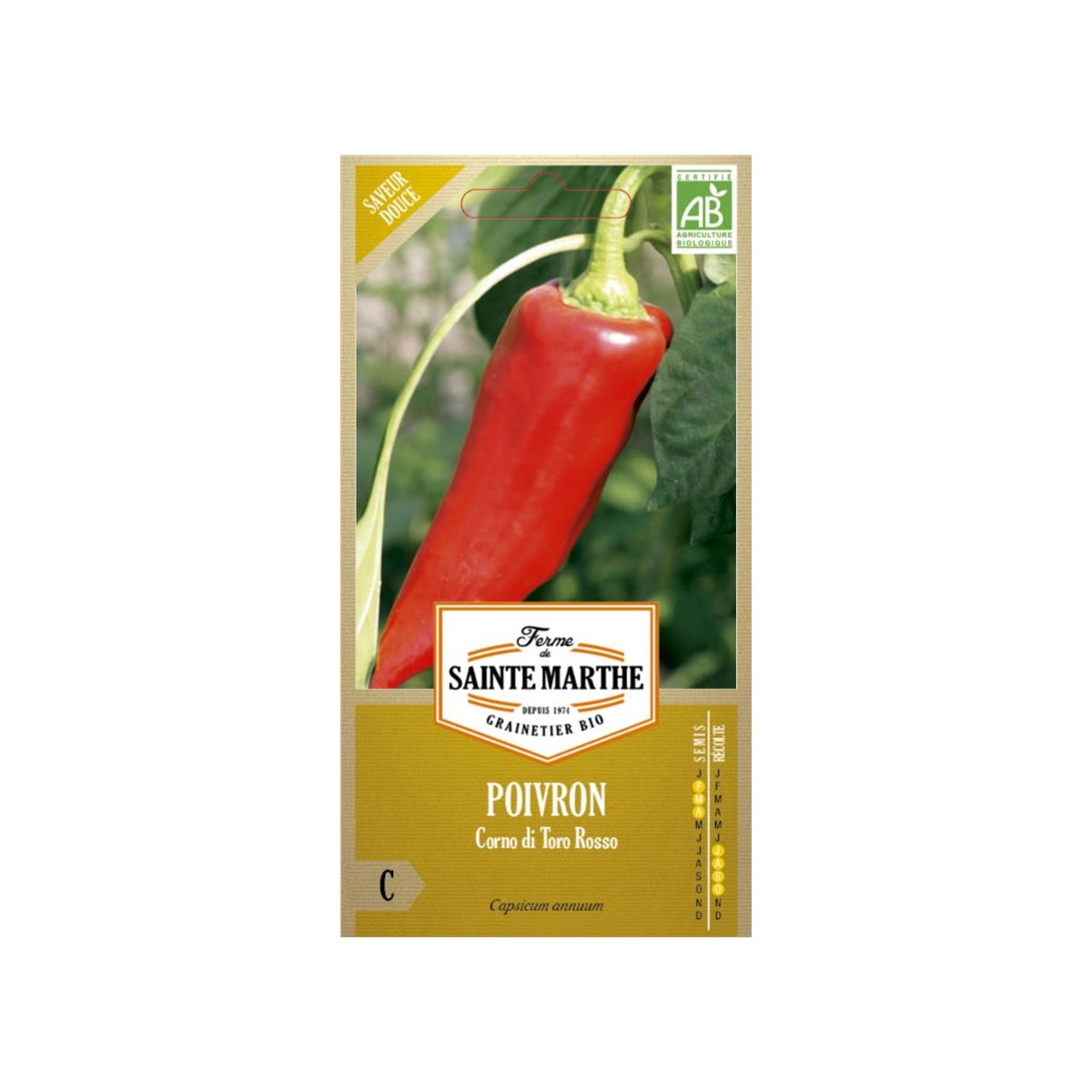 POIVRON Corno di Toro Rosso AB - Semences reproductibles bio produites par la Ferme de Sainte Marthe