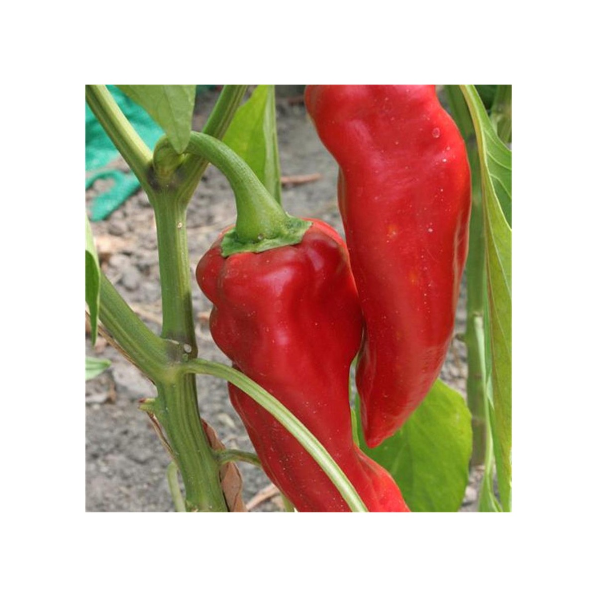 Plante potagère et condimentaire. Une des premières variétés à mûrir au jardin. Présente une saveur douce et parfumée pour un fruit rouge à maturité de 18 à 20 cm de long.