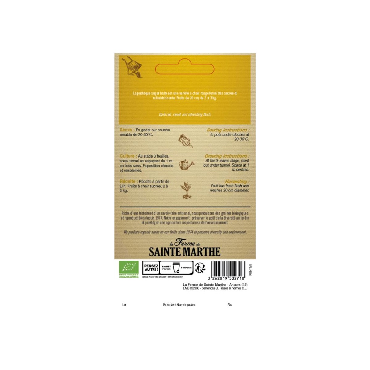 PASTÈQUE Sugar Baby AB - Semences reproductibles bio produites par la Ferme de Sainte Marthe