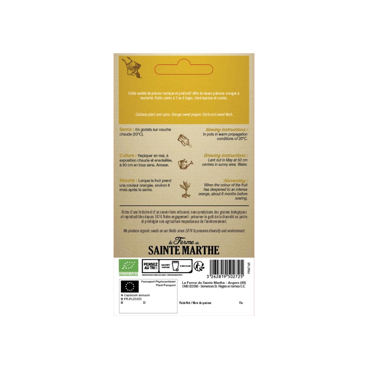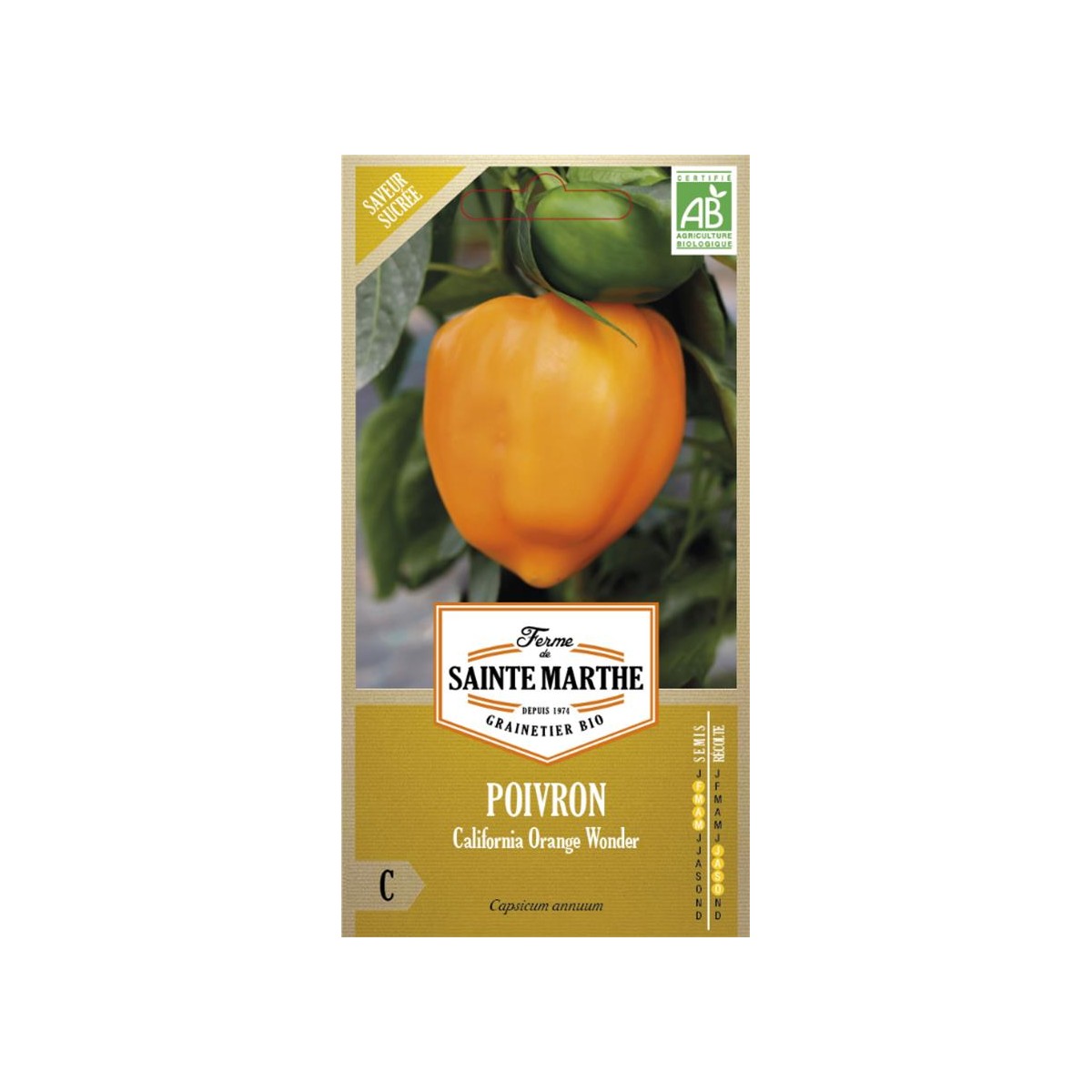 POIVRON California Orange Wonder AB - Semences reproductibles bio produites par la Ferme de Sainte Marthe