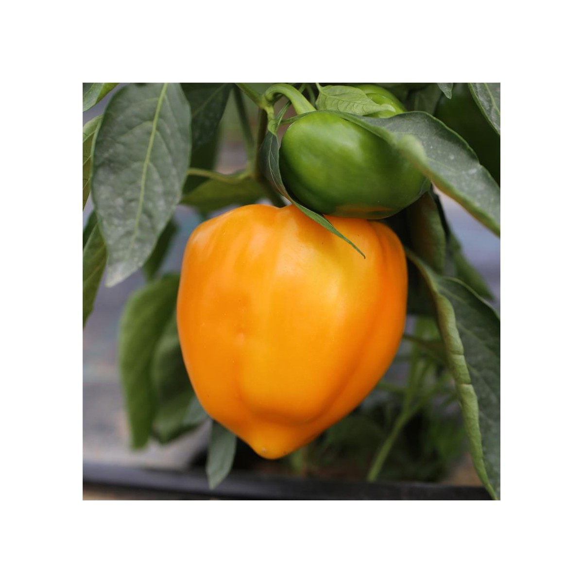 Cette variété de poivron rustique et productif offre de beaux poivrons oranges à maturité. Fruits carrés à 3 ou 4 loges, chair épaisse et sucrée.