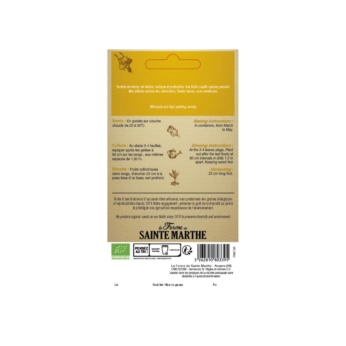 CONCOMBRE le Généreux AB - Semences reproductibles bio produites par la Ferme de Sainte Marthe