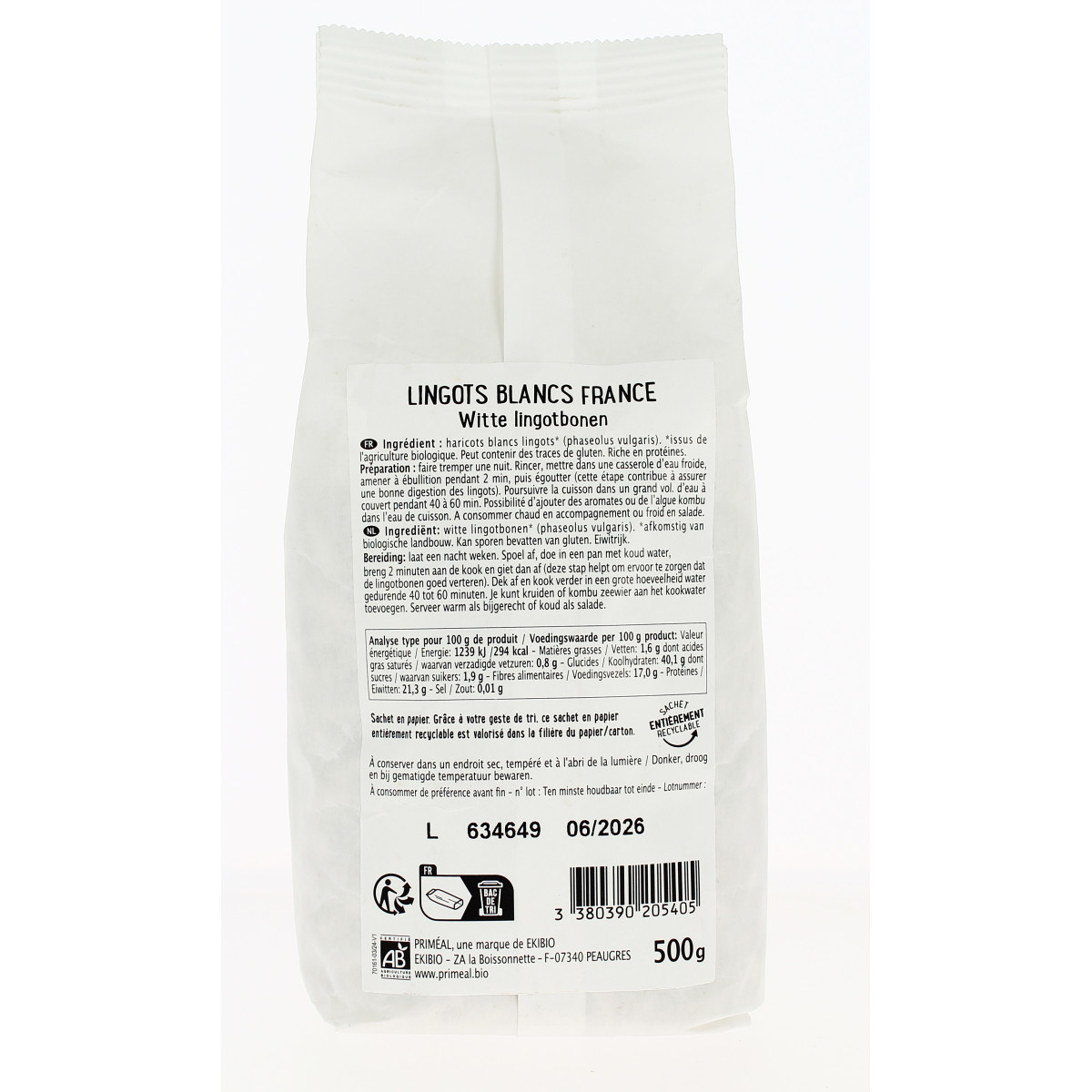 Haricots Lingots blancs de France bio de la marque Priméal.