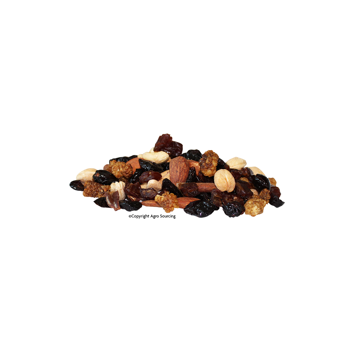 Date de Durabilité Minimale : 31/01/2026 - 600 g - Mélange de fruits séchés (Dattes Deglet Nour, cranberries, amandes et noix de cajou grillées, mulberries)
