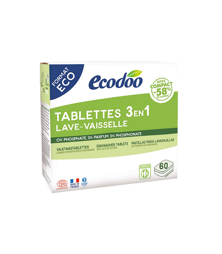 Avec leur formule ultra concentrée, les tablettes 3 en 1 Ecodoo sont plus économiques et leur format plus compact !