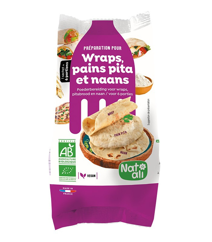 Préparation en poudre bio pour wraps - pains pita - naans bio & sans gluten de la marque Natali