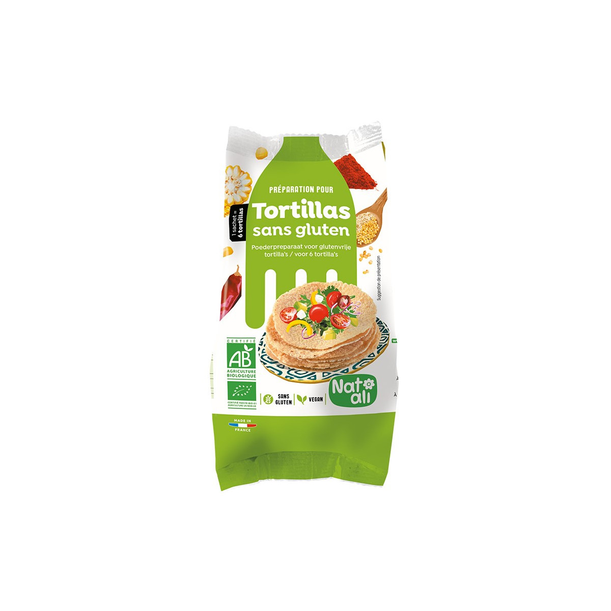Préparation en poudre BIO pour tortillas sans gluten bio & sans gluten de la marque Natali
