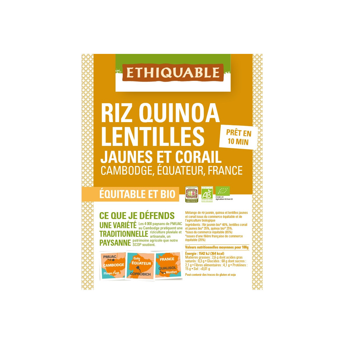 Riz Quinoa lentilles bio & équitable bio & équitable de la marque Ethiquable