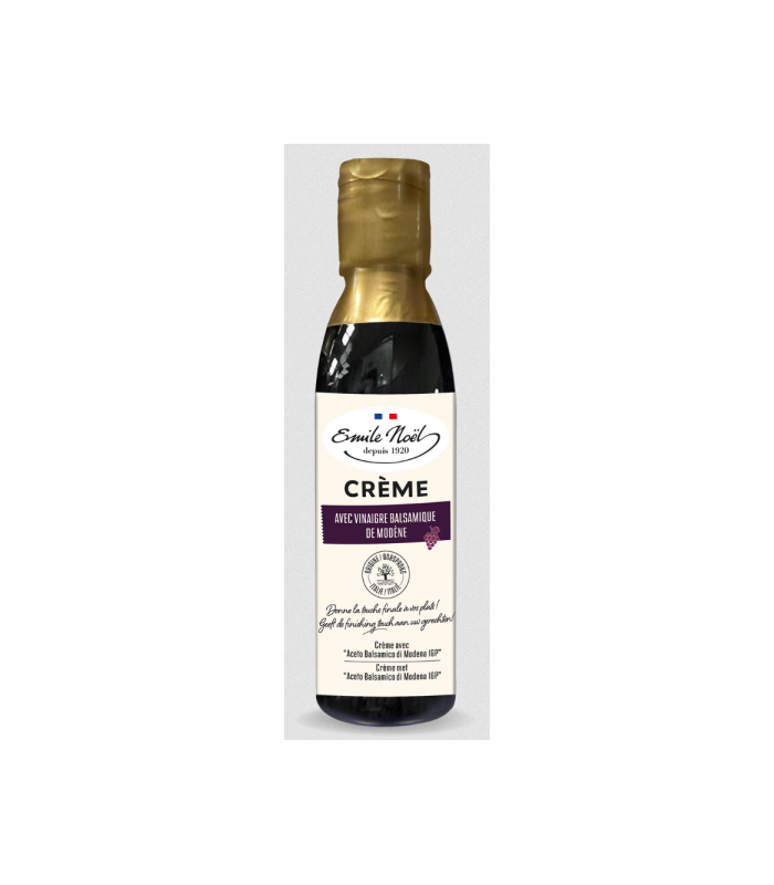 La crème de vinaigre Emile Noël est obtenue à partir du moût cuit de raisins typiques de Modène, concentré et habillement mélangé à du vinaigre balsamique de Modène vieilli. Cette réduction vous permettra de réaliser des décors d’assiettes aussi beaux que bons, en salé comme en sucré, pour accompagner vos desserts, viandes rouges, gibiers…